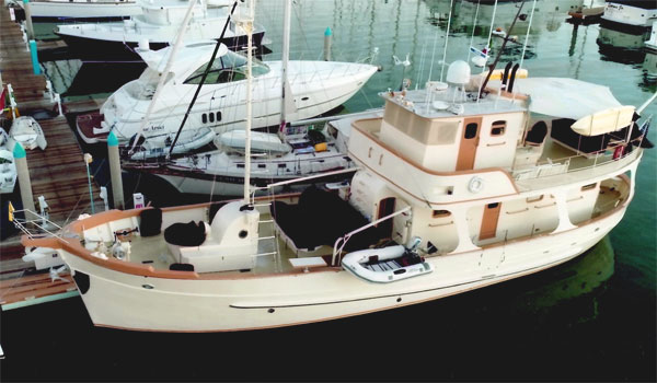 She didn't mean to run afoul of the law. And it certainly had nothing to do with her upbringing. Designed as a North Seas fishing boat, she was originally commissioned by an industrialist as the Tiki. She sailed from the Hagen Shipyard in Norway on her own bottom, and was delivered to Seattle in the summer of 1962. There, she was lovingly cwed fon Her new owner realized she was underpowered and eventually removed her twin 90 hp Volvos and replaced them with larger Cummings engines. Together; they cruised the Pacific Northwest area extensively for 17 years. Then she was sold to a small furniture manufacture