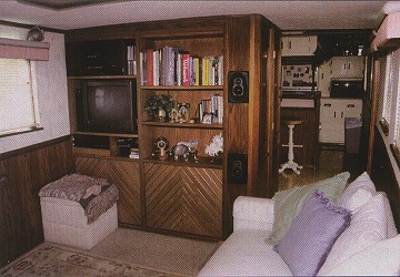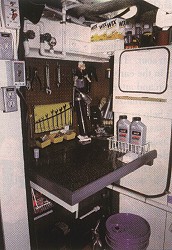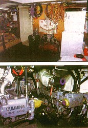machine bases made of cast iron. They don't budge, even in heavy seas. The galley itself has full size double stainless sinks, three-burner electric stove and oven, full size 2-door refrigerator/freezer, microwave and lots of counter and locker space. All these areas have central heating/'air conditioning.