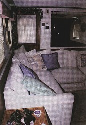 The galley and Salon had been modified for Navy use, so these were gutted and redesigned to &CI niore like a borne. The salon has a custom couch with reclining chair at one end, ottomans, and a full wall organizer and entertainment center. The galley now has a breakfast bar with four antique stools with bubble gum
